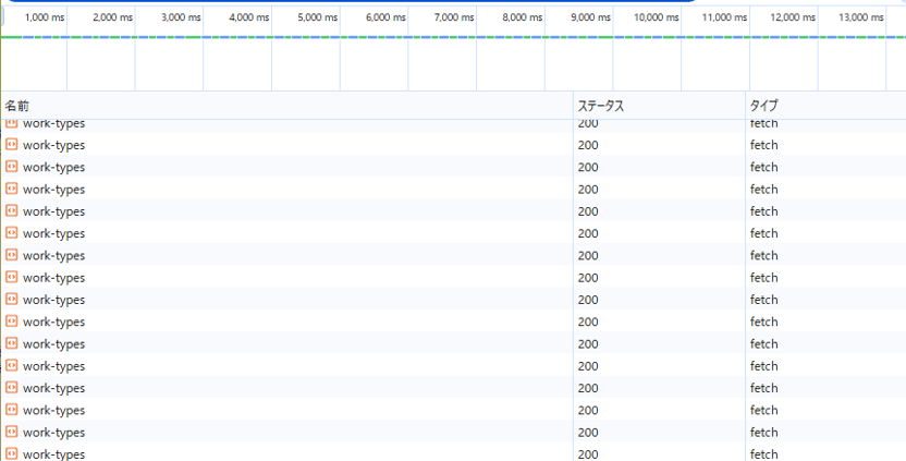 Networkタブでもリクエストが順番に実行されていました。